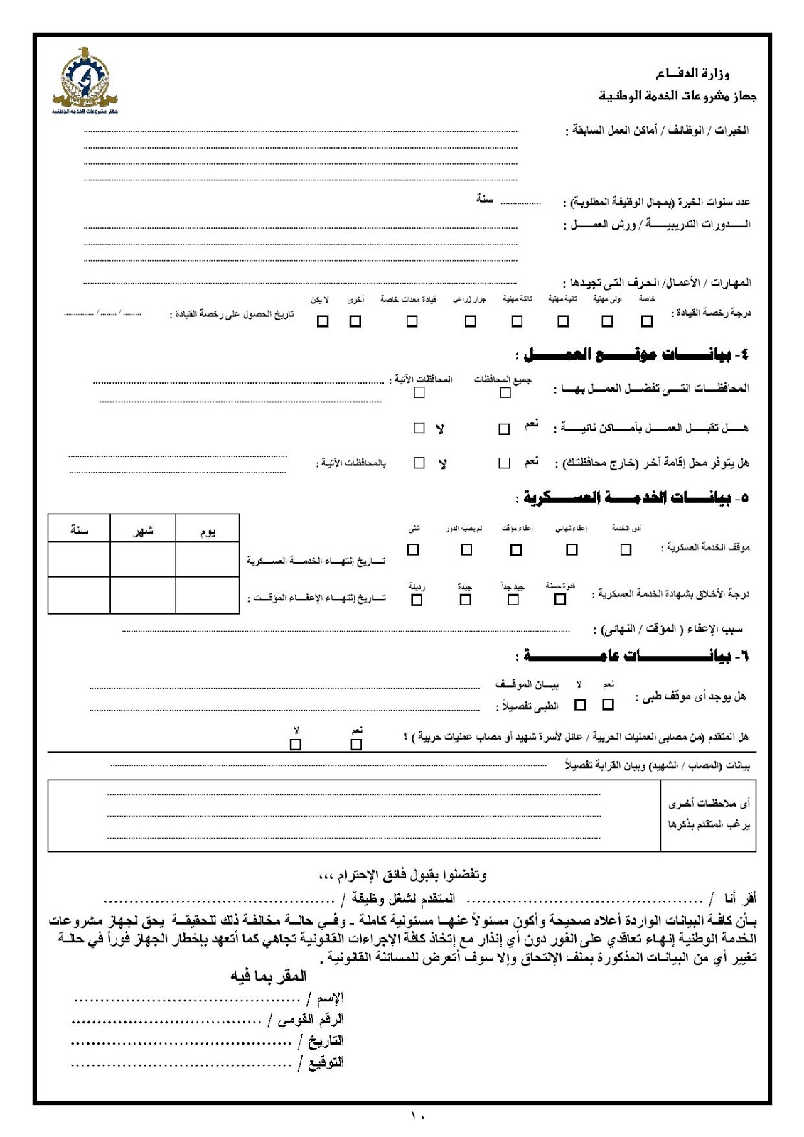 على جميع الراغبين التقديم لوظائف جهاز مشروعات الخدمة الوطنية ملئ وتسجيل البيانات